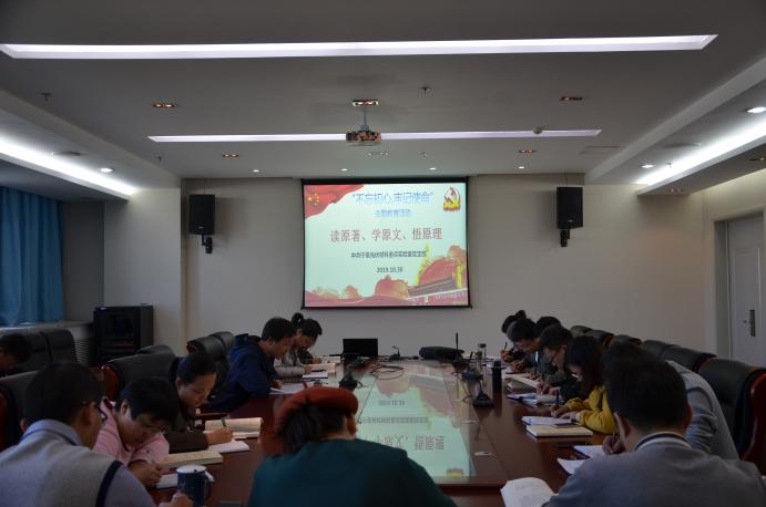 2019年10月30日,中共宁夏光伏材料重点实验室党支部在科技楼A610会议室召开“不忘初心、牢记使命”主题教育,开展“读原著学原文悟原理”专题学习活动第五讲,全体师生党员参加。会议由支部书记何力军同志主持。