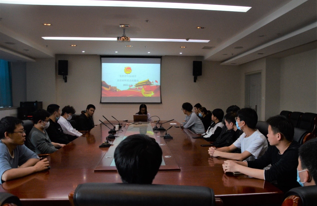 2022年4月26日下午,实验室团支部在科技楼A610会议室召开支部大会。学习中国青年运动史,全体团员参会,会议由团支部书记祝钰灵同志主持。