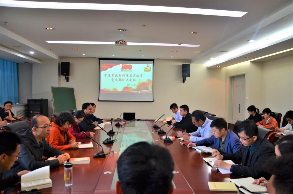 2021年4月29日上午9点,中共宁夏光伏材料重点实验室党支部在科技楼A610召开党支部扩大会议,主题是党史学习教育。全体师生参加,由支部书记何力军同志主持。