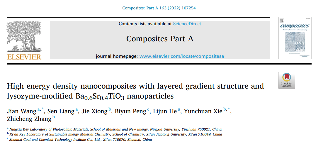 王健课题组在高储能复合电介质取得重要科研进展,相关结果以“High energy density nanocomposites with layered gradient structure and lysozyme-modified Ba0.6Sr0.4TiO3nanoparticles”为题发表在国际复合材料领域顶级期刊《Composites Part A: Applied Science and Manufacturing》,成人论坛