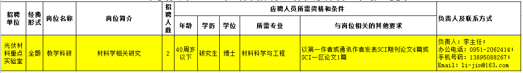 宁夏光伏材料重点实验室2019年下半年招聘公告
