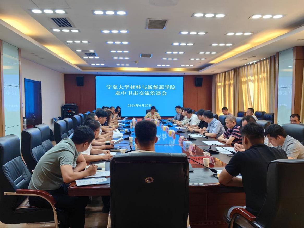 党总支书记刘国强、院长夏明许、测试分析中心副主任(主持工作)李海波同志及学院部分教师赴中卫市进行了为期两天的交流洽谈活动。中卫市发改委副主任黄占荣同志主持召开座谈会议,中卫市委组织部、市工业和信息化局有关领导及当地部分企业负责同志参加座谈。