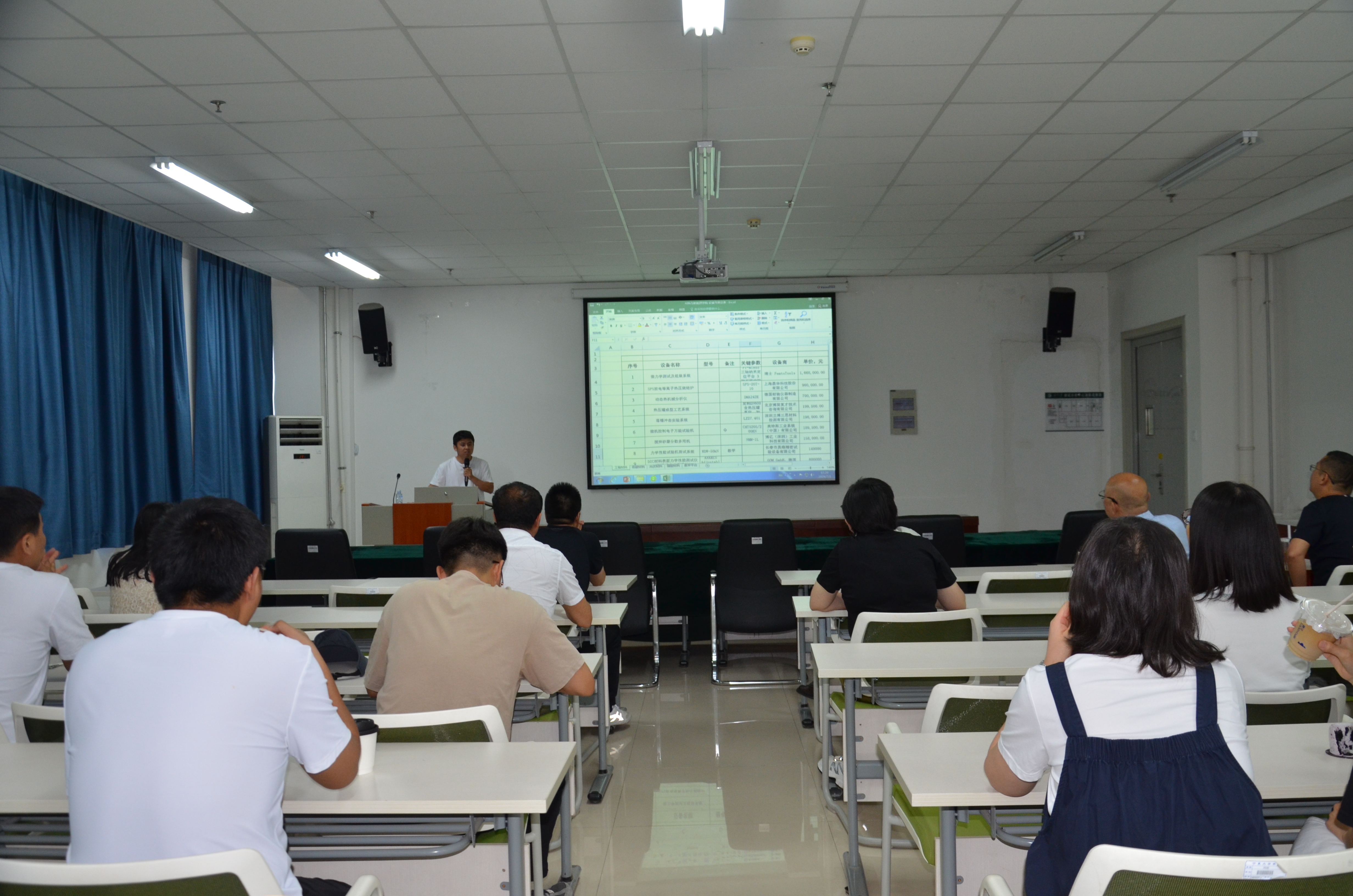 实验室设备管理负责人吴斌涛详细介绍了学院现有设备的型号、功能、所在及预约流程等信息,回答了老师们的提问。