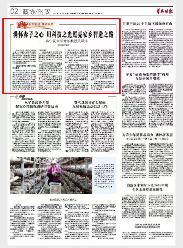 吴斌涛教授接受《华兴时报》深度专访,题为《满怀赤子之心 用科技之光照亮家乡智造之路》。专访中,吴教授回顾了自己从家乡学子成长为学科带头人的历程,其间赤忱初心始终未改,他凭借 “硬核科技”,为家乡制造业高质量发展注入强劲动力。