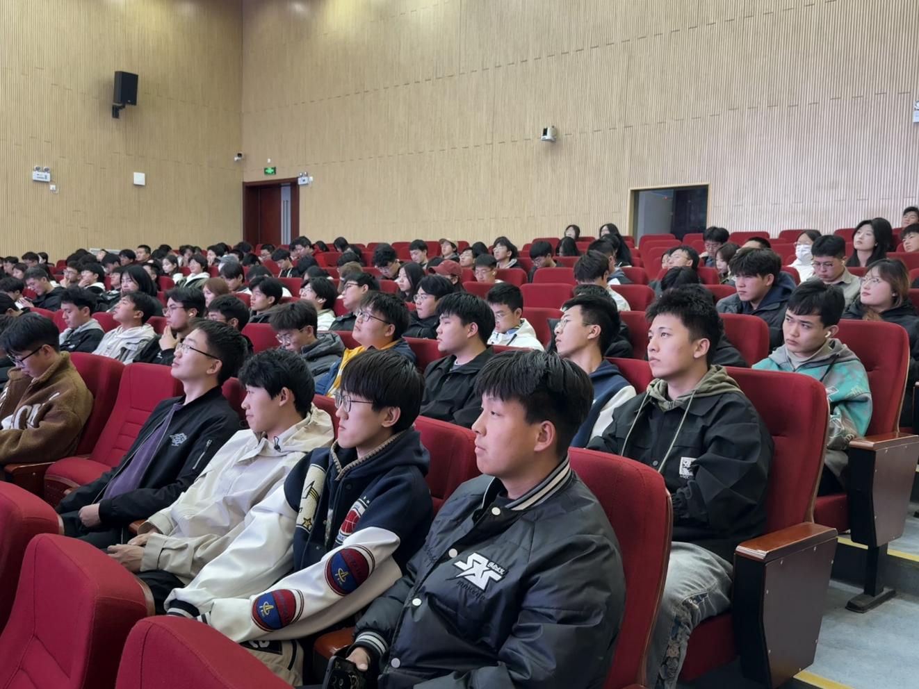 国际合作交流处主任甄妮介绍学校资助政策。学院大一、大二年级全体本科生参加。