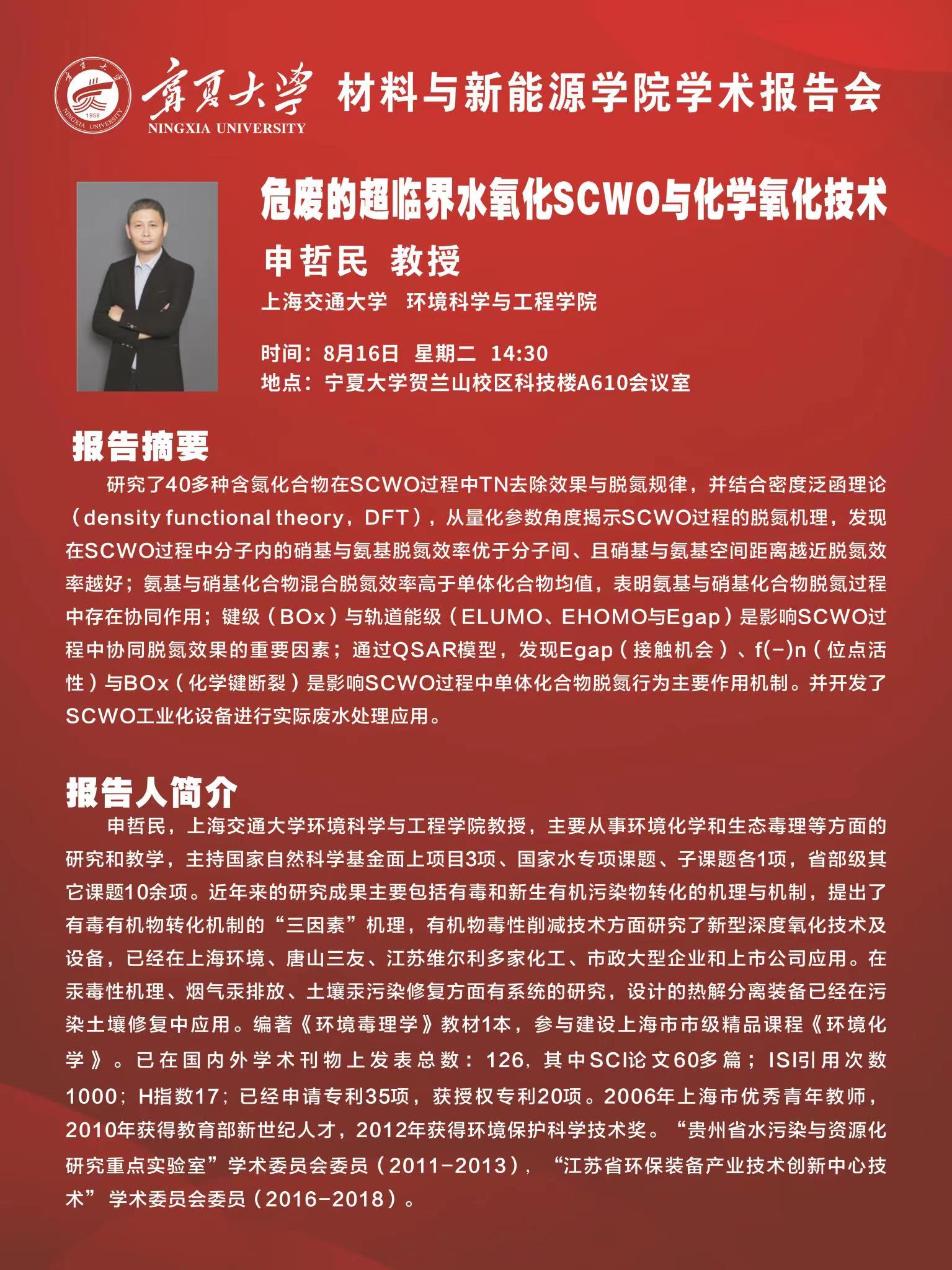 上海交通大学申哲民教授学术报告会议通知