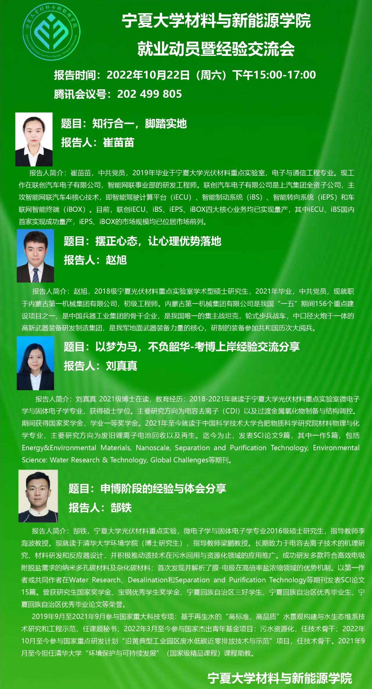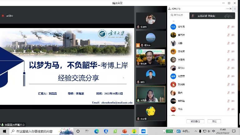 2022年10月22下午,学院通过线上会议形式召开2022研究生就业动员暨经验交流会。会议由李海波副院长主持,学院主管就业相关教师、学院优秀毕业生代表、全体研究生及部分本科生参加会议。