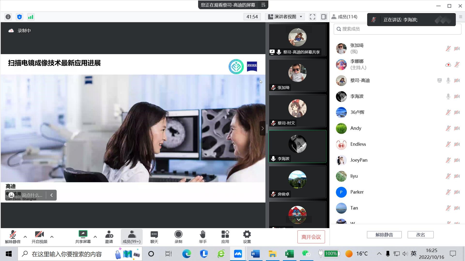 2022年10月16日下午,学院通过线上形式举办了主题为“材料、能源、生物原位分析技术与方法介绍”的“前沿技术”论坛,论坛由李海波副院长主持,蔡司集团显微镜部应用技术主管高迪、应用专家韩冰、时文主讲,学院全体师生参加。报告吸引了全国多所高校相关专业师生。