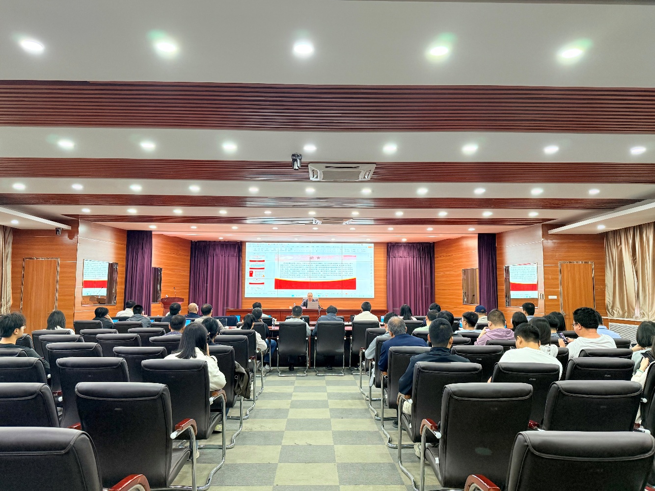 为贯彻落实学校重大项目设备采购领域廉政谈话会精神,增强学院科研人员诚信意识,筑牢科研项目廉洁防线, 9月20日,学院特邀自治区审计厅袁树林处长来院作科研项目管理专题报告。报告由院长夏明许主持,学院领导班子及全体教师聆听报告。