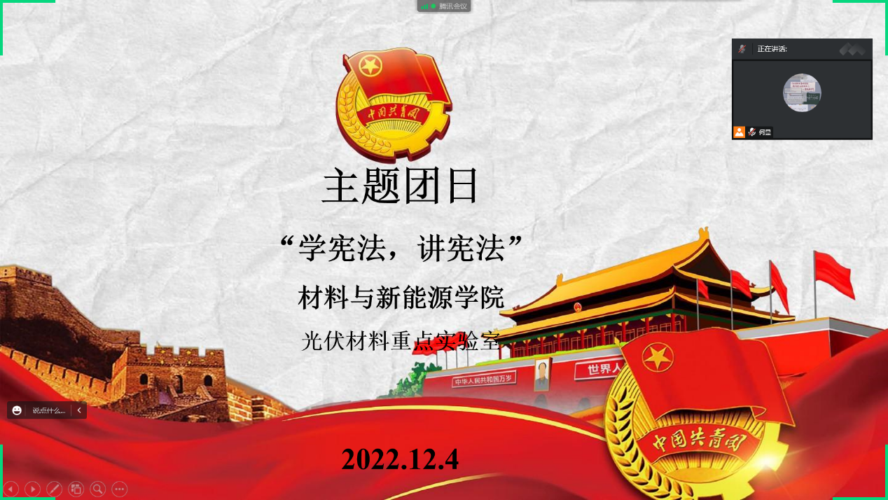 2022年12月4日晚上,学院研究生团支部采用线上会议形式开展“学宪法、讲宪法”主题团日活动,学院全体研究生团员参加会议,会议由团支部书记何显同志主持。