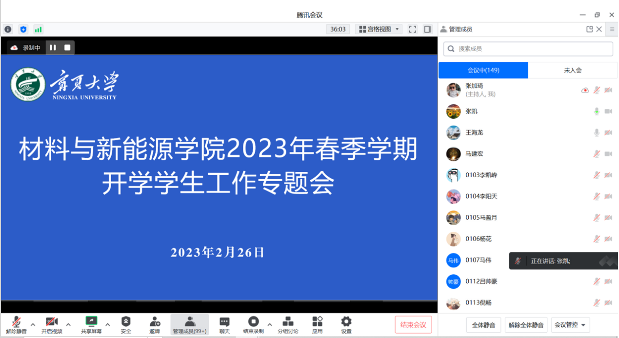 2023年2月26日晚上,学院通过线上会议形式召开了2023年春季学期开学学生工作专题会议。学院领导、学生工作相关教师、全体本科生、研究生参加。会议由副院长王海龙主持。